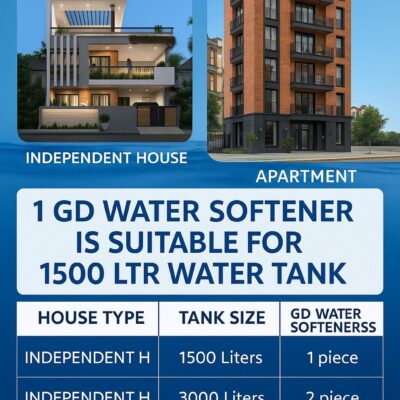 The GD Electrolytic Water Softener is a revolutionary solution designed to tackle the challenges of hard water — particularly from borewells — without the need for chemicals, salts, or ongoing maintenance. It’s an eco-friendly, cost-effective, and hassle-free way to ensure your water is soft, safe, and suitable for everyday use.