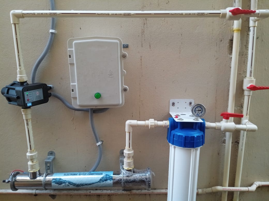 How It Works : Using advanced electrolytic technology, the softener alters the structure of hard water minerals such as calcium and magnesium, preventing them from forming scale deposits. This transformation helps protect your plumbing, appliances, and fittings — extending their lifespan and improving efficiency.
